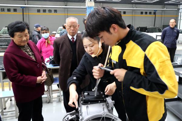 在淮北工业和艺术学校,重点观摩教学教研成果及校园建设情况。在智能制造实训基地和汽车维修实训基地,各负责人介绍了近年来职业教育发展、实训设施建设、产教融合育人等方面的成效。老同志们近距离参观了先进的实训设备与学生实操训练现场,与师生亲切交流,深入了解技能人才培养模式创新成果。看到校园环境、实训条件的日趋完善,青年学子们勤学苦练,老同志们倍感欣慰,为我市教育事业高质量发展感到振奋。