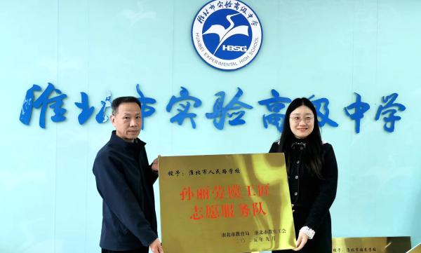 会上,为淮北工业和艺术学校“顾宏劳模工匠志愿服务队”、淮北市特殊教育学校“苏文芳劳模工匠志愿服务队”、淮北市实验高级中学“赵海艳劳模工匠志愿服务队”、淮北市人民路学校“孙丽劳模工匠志愿服务队”、淮北市梅苑学校“张飞劳模工匠志愿服务队”、淮北市西园中学“祝鹤劳模工匠志愿服务队”、淮北市第一实验小学“冀骥劳模工匠志愿服务队”等7支劳模工匠创新团队授牌。孙丽和赵海艳作了劳模工匠创新团队典型经验分享。