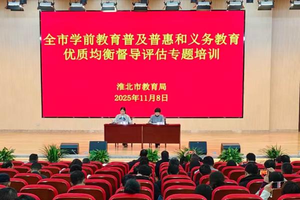 为持续推进我市学前教育普及普惠和义务教育优质均衡发展,日前,由市教育局主办的淮北市学前教育普及普惠和义务教育优质均衡督导评估业务培训班在市三实小中湖校区举办。市教育局党组成员、副局长凌莉出席培训班并讲话。县区和市直学校260余名分管负责同志、业务科室负责同志、中小学校长、专兼职责任督学及相关业务人员参加培训。