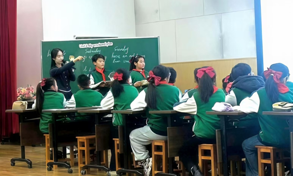 活动在淮北市小学英语名师工作室首席李舒愉的主持下,三场高质量现场课依次呈现。濉溪路小学的罗琛皞老师率先带来PEP四年级上册Unit 3 Places we live in B Read and write,以生活化场景为切入点,引导学生用英语描述所观所感,不仅融入中国传统文化知识,对学生进行审美教育,还充分体现了语言学习与文化传承的深度融合;首府实验小学杨雨寒老师执教的PEP四年级上册Unit 4 Helping in the community part A Let's talk & learn,通过互动游戏与“最美社区英雄评选”的情境创设,既提升了学生语言运用能力,又激发出其社会责任意识与担当意识;濉溪县第一实验学校(南校区)的李静雯老师则聚焦PEP六年级上册Unit 3 My weekend plan Part A Let's talk,将时间管理理念融入英语教学,培养学生规划意识、逻辑思维与跨文化表达素养。