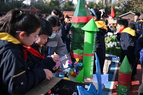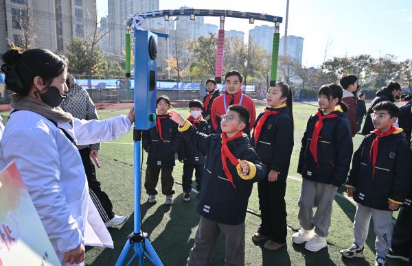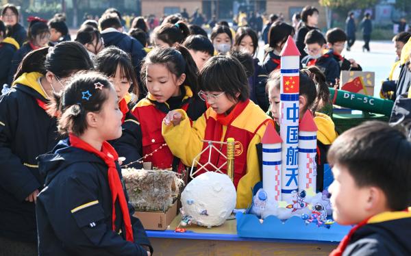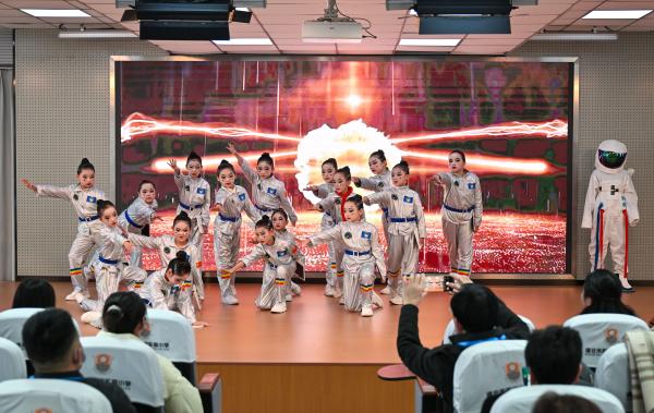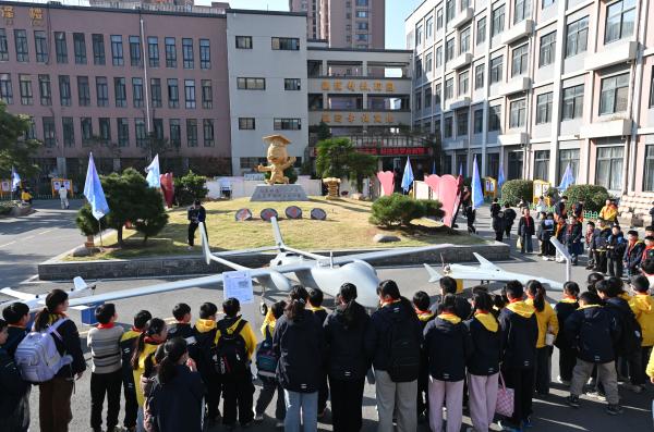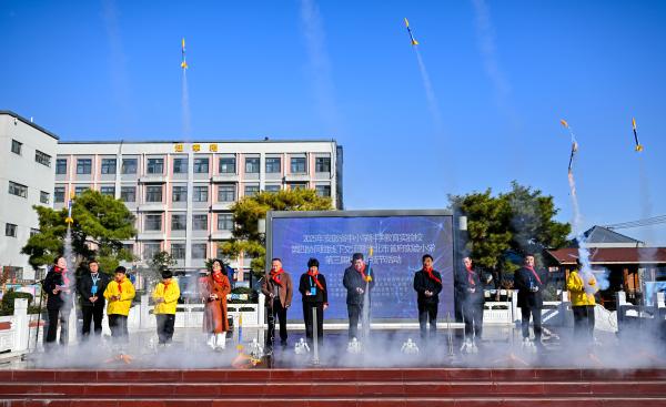 活动在庄严的升旗仪式中拉开帷幕。淮北市教育局党组成员、副局长王月辉致开幕词,他介绍了淮北市在科学教育领域的丰硕成果,强调要以本次活动为契机,深化区域协同,推动科学教育从“单点突破”向“集群发展”升级。随后,领导嘉宾与少先队员代表共同放飞模型火箭,正式启动校园科技节。在校园科技展示环节,科学大篷车、无人机展示、智能机器人表演等多板块活动精彩纷呈,学生们在实践中感受科学魅力,展现出浓厚的探索热情。科技文艺演出更是将科技与艺术完美融合,舞蹈《AI未来》、诗朗诵《科技之光 照亮未来》等节目,生动诠释了新时代少年对科学的热爱与追求。
