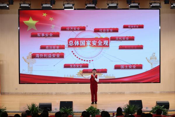 舞台上,《向前闯》活力迸发,以动感歌舞点燃少年守护热忱;《国安所系人人有责》串联起学校日常与国家安全;《小鼓拍拍爱祖国》以稚嫩童声传递家国温情;《浇灌安全之树,共筑祖国未来》讲述“清澈的爱,只为中国”动人故事;《平安结》以中国结表达平安守护的美好祈愿;《少年志・满江红・强国梦》慷慨激昂,经典诵读与情景演绎结合抒发少年报国壮志。互动竞答环节里,学子们踊跃抢答国家安全知识。