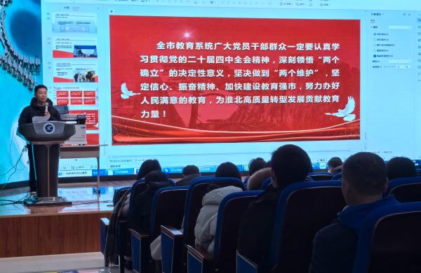 学习好、贯彻好党的二十届四中全会精神,是当前和今后一个时期全市教育系统的一项重大政治任务。目前,全市教育系统学习贯彻党的二十届四中全会精神已进入集中宣讲阶段,各级教育部门坚持学思用贯通、知信行统一,将学习宣传贯彻全会精神与落实习近平总书记关于教育的重要论述紧密结合,与落实立德树人根本任务、深化教育综合改革、推动淮北市教育高质量发展中心工作紧密结合,与科学谋划“十五五”时期淮北市教育发展规划紧密结合,切实把全会精神转化为提升教育质量、促进教育公平、增强教育服务能力、建设高素质专业化教师队伍、构建高质量教育体系的强大动能和实际成效,为淮北市在推进中国式现代化建设新征程中展现更大作为贡献教育力量。