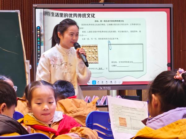 课堂展示环节,两地教师带来特色课例:淮北市泉山路学校教师孟娣执教《了不起的优秀传统文化》,以数字人“泉宝” 为专属学习小伙伴,带领学生走进 “中医馆”“节气厅”“武术堂” 三大文化空间。学生在沉浸式体验中直观感受中华优秀传统文化的深厚底蕴与独特魅力,深刻体会其“了不起”;课堂上,孟娣进一步借助智慧课堂的信息化手段,引导学生开展合作探究,拓展传统文化认知边界。这一教学实践不仅让学生深度感知传统文化的精髓,更有效增强了他们对中华优秀传统文化的认同感与自信心,在文化浸润中厚植家国情怀。