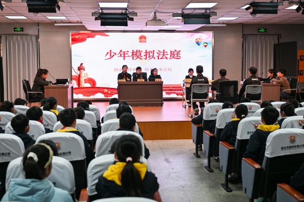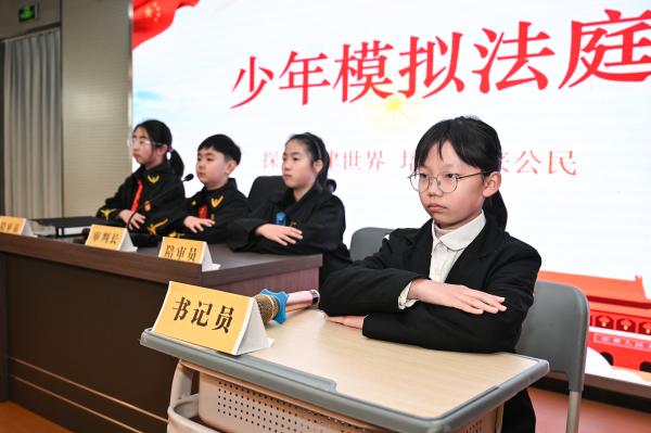 “少年模拟法庭”是学校法治教育的亮丽名片,也是最受学生欢迎的特色活动。