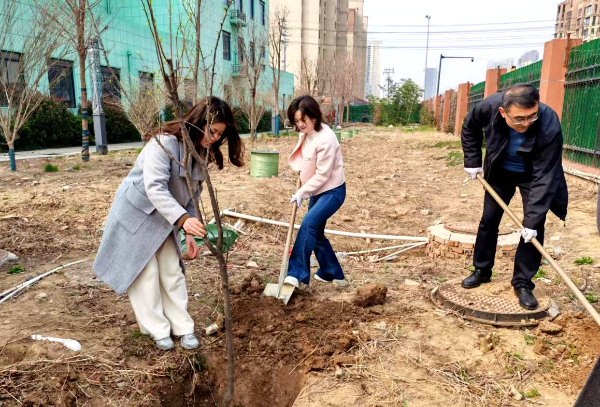 植树现场,大家分工协作,挥锹培土、扶苗浇水,合力栽下一株株新苗,以点滴行动践行绿色发展理念,为特殊教育校园增添了勃勃生机。