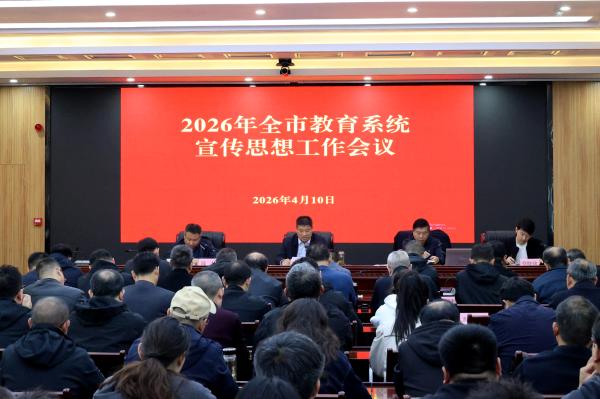4月10日,2026年全市教育系统宣传思想工作会议在市教育局五楼会议室举行,回顾总结了2025年全市教育宣传工作取得的成绩,对2026年重点工作进行安排部署。局党组成员、副局长王月辉出席会议并讲话,各县(区)教育局、市直各学校分管负责同志,全市教育系统通讯员代表参加会议。