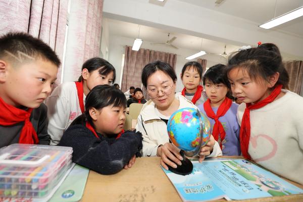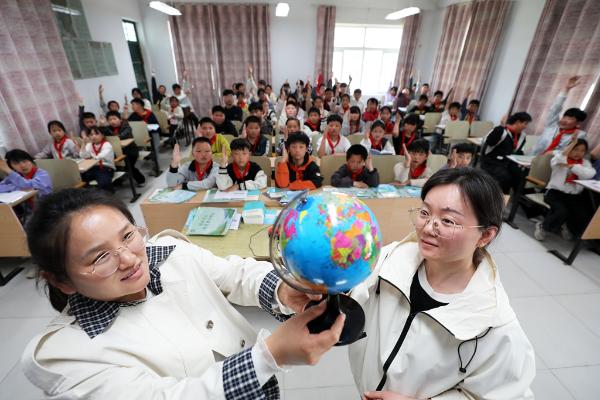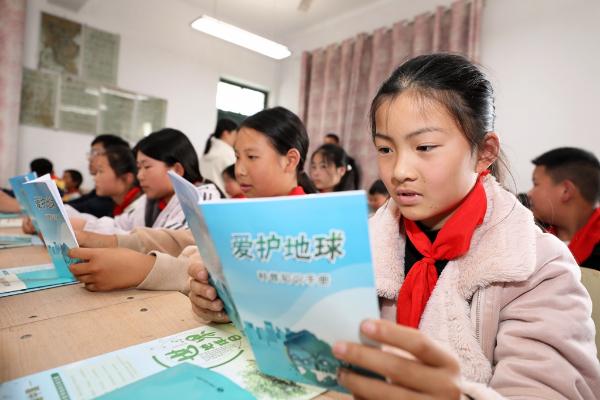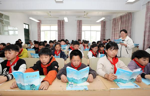 4月20日,淮北市自然资源和规划局志愿者在杜集区石台镇葛塘学校,为孩子们讲解保护地球的相关知识。