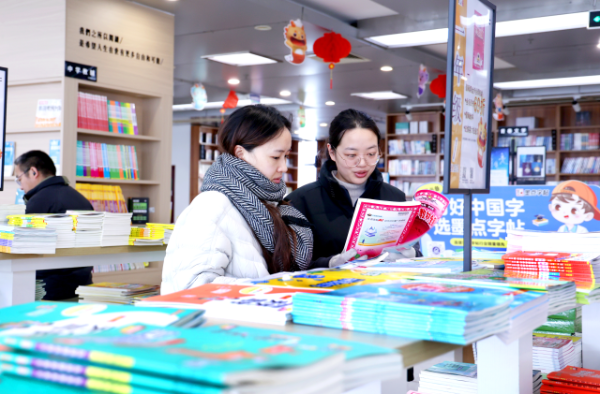 家长在为孩子挑选新学期教辅材料。通讯员 周方玲 摄