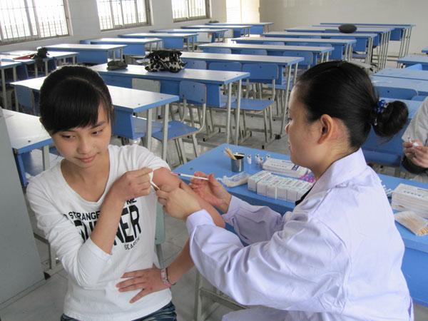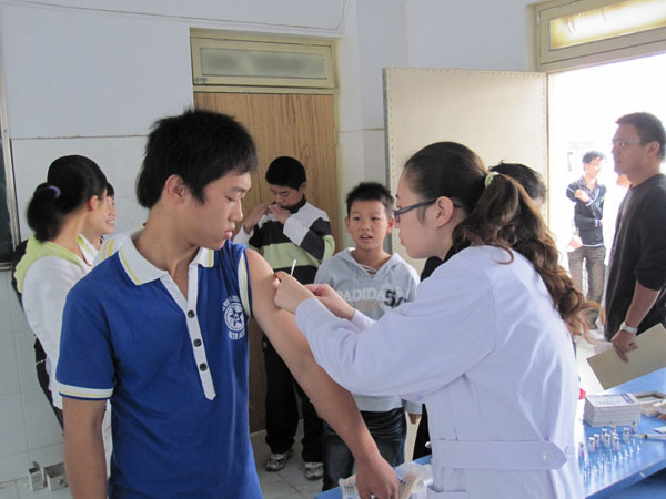 为了将这一次惠及民生的政策落实好,学校召开专题会议制定详细实施方案,并要求全体师生对这次工作的重要性、必要性都要有深刻的认识,要求每一个班主任以此为契机,加强对学生持之以恒预防甲型H1N1流感教育。接种过程中,同学们都积极配合,共有2500多名学生接种了乙肝、麻疹疫苗。为了使此次活动有效、有序的得到开展,学校专门腾出了多媒体教室、室内羽毛球场作为接种室,对每一个可能出现意外的环节都格外注意,派专人负责。在淮北市疾病防控中心的大力支持下,该校麻疹疫苗接种工作于当日下午六时顺利结束。