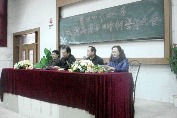 3月2日下午,淮北四中高考百日誓师大会在该校多功能教室举行。整个仪式庄严而隆重,副校长李克强主持整个仪式,校党委书记孙敬民首先进行讲话,在讲话中对本届全体教师的付出表示感谢并对全体高三学生寄予殷切希望。教师代表翟忠浩代表全体老师对学生提出了新的要求,希望同学们努力拼搏、苦战百天,逐鹿考场,决胜高考。学生代表李夏丽代表全体同学作了承诺:珍惜一百天,让飞翔的梦在六月张开翅膀,奋斗一百天,让雄心与智慧在 六月发出光芒。最后全体同学作了宣誓 ,通过这次仪式使高三的同学更加感到了时间的紧迫,知道自己肩上的分量,整个仪式在热烈的氛围中圆满结束。