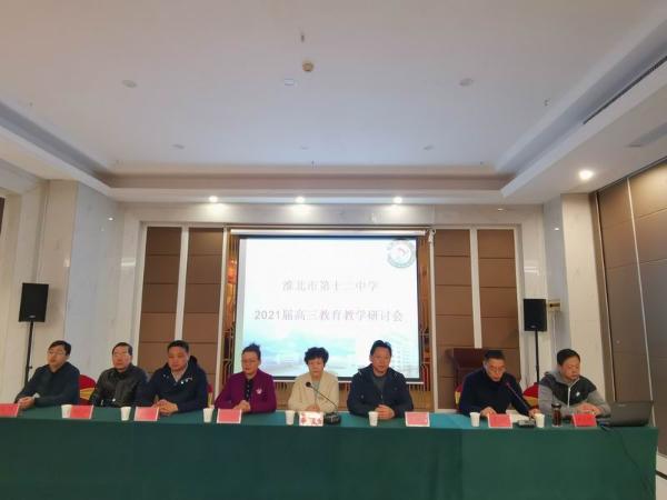 为进一步提高高三一轮复习备考质量,明确目标,凝聚力量,2020年11月22日,淮北市第十二中学召开2021届高三教育教学研讨会。校长陈红文、党总支副书记李次梅、副校长丁怀新、副校长徐敬争及高三全体老师参会,会议由年级主任周维领主持。