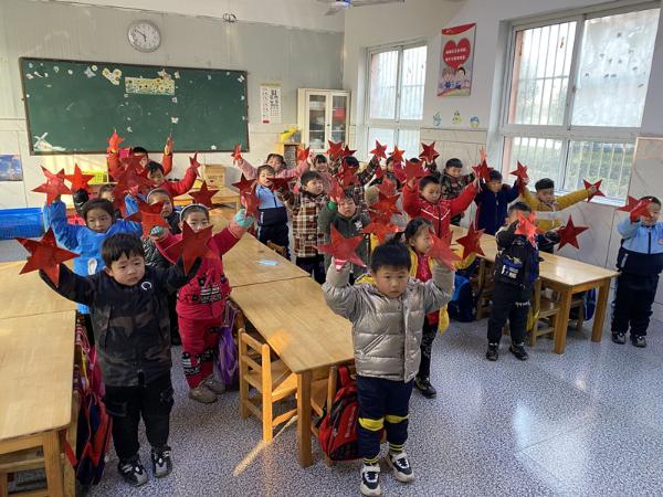 活动中,结合孩子们的年龄特点进行不同的纪念活动:中班齐看红电影、齐唱红儿歌、大班讲红故事。孩子们在不同的活动中感受毛泽东爷爷的博大胸襟、超人智慧,增强了爱国热情。中班的孩子们在电影中,更直观的认识了毛爷爷;在老师的带领下以齐唱红儿歌《我爱北京天安门》来表达自己要向毛爷爷学习和崇拜毛爷爷的感情,同时也借助这种活动形式让孩子们更加爱园、爱家、爱国;大班孩子们通过红故事认识了毛爷爷,了解了毛爷爷的事迹,在丰富感人的故事中,感受毛爷爷的伟大与不凡。