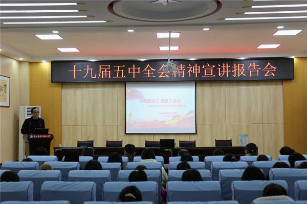 此次宣讲内容,深入浅出、内容丰富,帮助全体教职工深化了对全会精神的理解,切实把全校教职工的思想和行动统一到党的十九届五中全会精神上来,凝聚共识,为推进教育教学营造了良好的舆论氛围。