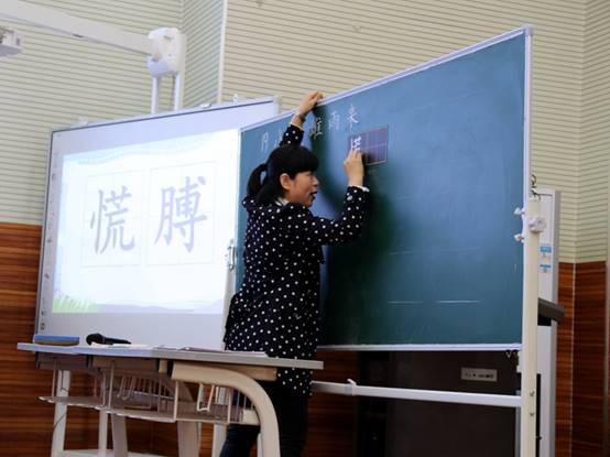 第一节课由市实验学校的张玮老师率先上场,她执教的《小英雄雨来》,在教学中,她能做到长文短教,精准定位,在学生预习的基础上,字音方面重点选择了三组多音字来夯实生字读音教学,抓住两个最易错、最难写的字来指导学生书写,落实写字的目标。重点引导学生如何给课文的每部分列小标题,由扶到放,注重引导和鼓励孩子,在此过程中孩子的语言组织能力、概括能力、表达能力都得到了锻炼,学习能力得到明显的提升,通过对比阅读感受到了雨来的英雄形象。