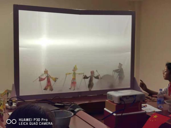 孩子们根据自己所选的人物,动手制作,不一会儿,一个个生动的唐僧、孙悟空、猪八戒、沙和尚就制作完成了。在老师的鼓励下,几组同学一一为大家表演了皮影戏小片段,一个个栩栩如生的人物通过白色幕布和灯光呈现在面前,孩子们深深的被皮影戏明丽的色彩、生动的画面、有趣的故事情节所吸引,更是用一阵阵欢笑和掌声见证了演出的精彩。孩子们丰富的想象力,获得了老师们的好评。