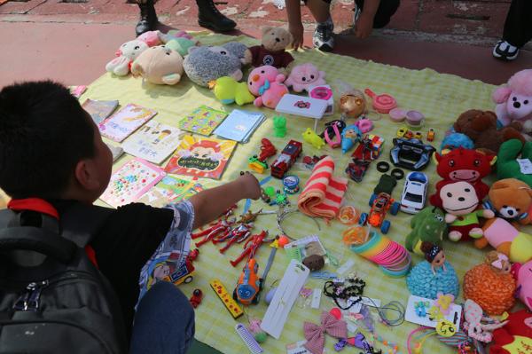 据悉,参加此次义卖活动的有来自一至五年级共22个班级,各班均有义卖摊位,所售商品均为同学们家中闲置的图书、玩具、文具、原创手工作品等。整个操场被琳琅满目的商品摊占据得恰到好处。家长志愿者也踊跃到场,参与到协助爱心义卖中。独特的宣传海报和数不胜数的在售商品错落有致地摆放,让人应接不暇。“小老板”们也都卖力地使出全身解数吸引顾客,有买二送一的,有买三抽奖的,还有拿着小喇叭叫卖吸引顾客的。师生们兴致勃勃地走进“市场”,开启淘宝之旅。活动现场,小“老板”们忙得热火朝天,“顾客”们逛有所获,享受着意义非凡的购物之旅带来的无限乐趣。近两个小时的义卖活动,在师生意犹未尽中圆满结束。随后,各班将义卖善款全部汇总至德育处,德育处将于助残日将善款捐给特殊学校的少年儿童。