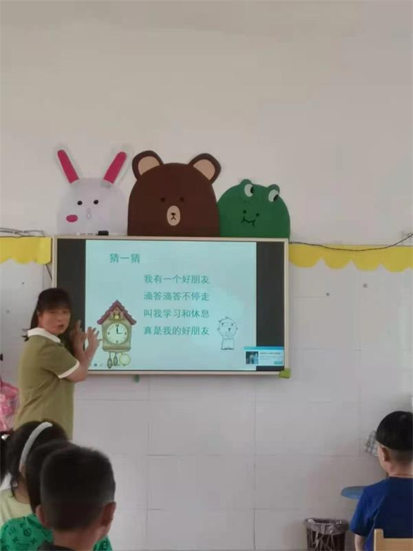 为了更好的做好幼小衔接工作,结合幼儿生活,让幼儿认识时钟,让幼儿认识整点和半点,知道时钟在我们生活中的重要性,知道时间对于我们每个人都是平等的,从而可以激发幼儿珍惜时间,养成按时学习、生活等良好的作息习惯,大班老师特意设计了本次教育活动。李莉老师通过观察、操作,引导幼儿认识时钟,能区分时针、分针,学会看整点、半点。结合幼儿生活经验,感知不同的时间里做不同的事情,培养幼儿遵守时间、珍惜时间的好习惯。