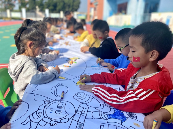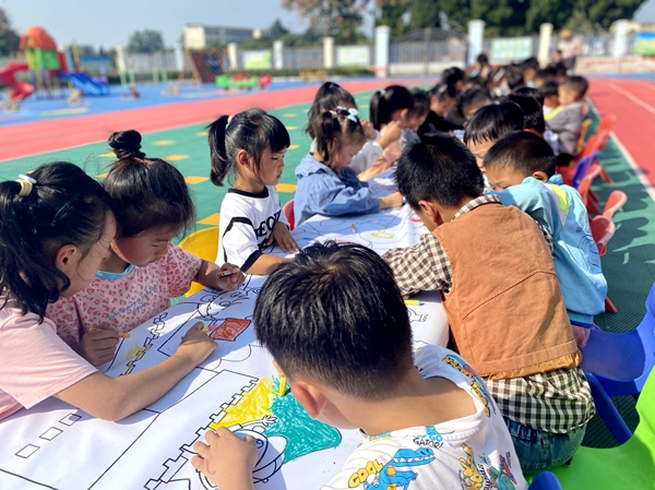烈山区临涣幼儿园开展“百米画卷迎国庆”主题绘画活动