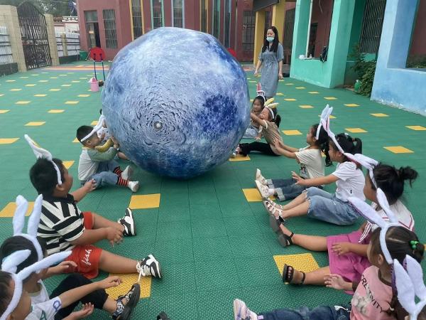 该园通过绘本故事、运动游戏等形式,介绍中秋节的起源、传说及民俗,引导幼儿学会感恩,珍惜与亲人团聚的幸福时光。小班“讲中秋”:老师利用绘本给小朋友讲嫦娥奔月、吴刚伐桂、玉兔捣药等神话故事,幼儿诵读有关中秋节的童谣和月亮有关儿歌,介绍中秋节的由来和习俗。中班“赛中秋”:老师们创设中秋主题运动场景,月饼投壶、冲上月球……游戏既新颖又有趣,孩子们激情饱满、活力四射。大班“吟中秋”:吟诵我国古代有关吟诵月亮的诗词,有的吟诵苏轼《水调歌头•中秋》,有的吟诵李白《静夜思》《月下独酌》,还有的吟诵张九龄《望月怀远》。