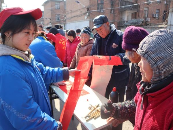 挥毫泼墨送春联 欢乐祥和迎新春 ——淮北七中进社区写、送春联