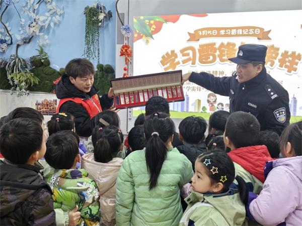 安康社区与花园派出所走进幼儿园与大班幼儿互动,进行了“3.5学雷锋日”宣传活动。工作人员通过图片、故事,带领孩子一起认识雷锋,聆听雷锋助人为乐的故事,让孩子们了解雷锋不怕苦不怕累的精神,学习雷锋助人为乐的精神。幼儿园志愿服务小分队的老师和孩子们一起走进安康社区开展志愿服务活动。捡拾垃圾,擦洗社区公共设施,以实际行动诠释着雷锋精神,在劳动中感受环保公益的快乐,孩子们忙碌的身影也成为了一道文明、靓丽的风景线。作为集体的一份子,孩子们从我做起、从身边的小事做起,主动承担扫地、捡垃圾、擦桌子、整理绘本等任务,维护环境卫生,让我们的班级变得更加干净美丽。幼儿园每个角落都留下了“小雷锋”的身影。