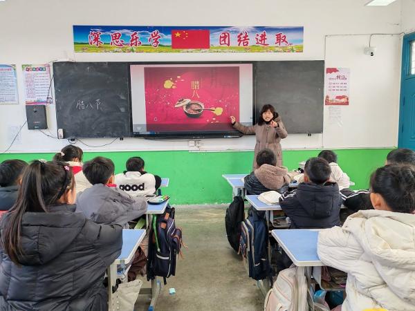 各班开展了丰富多彩的主题班会,“小孩小孩你别馋,过了腊八就是年……”欢快的儿歌拉开了班会的序幕。老师通过PPT、图片展示,向同学们讲述“腊八节”的由来及习俗;通过视频,播放熬腊八粥、腌腊八蒜的制作方法。孩子们纷纷表示,回家要和父母一起,积极动手参与熬制,品尝独特美味,在劳动中感受腊八节的快乐。高年级的学生们在老师的带领下,一起畅游在古诗词里的腊八节中,感受中华优秀传统文化的魅力。