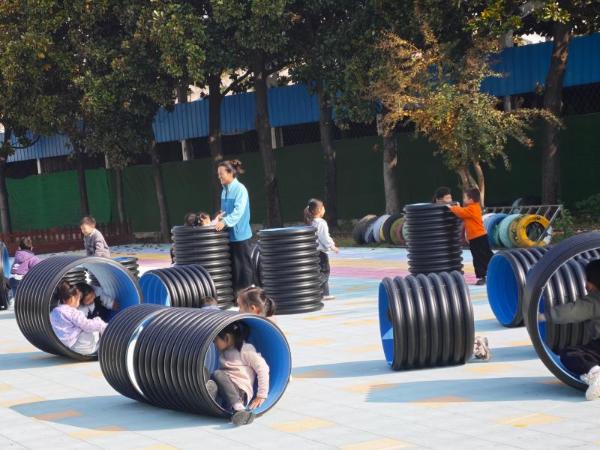 目前,任楼幼儿园已将螺纹管与碳化积木、轮胎、自然物等材料组合投放,并计划根据幼儿的游戏进展持续丰富材料种类。孩子们的创意玩法也将被记录成册,成为幼儿园游戏课程开发的“活教材”。