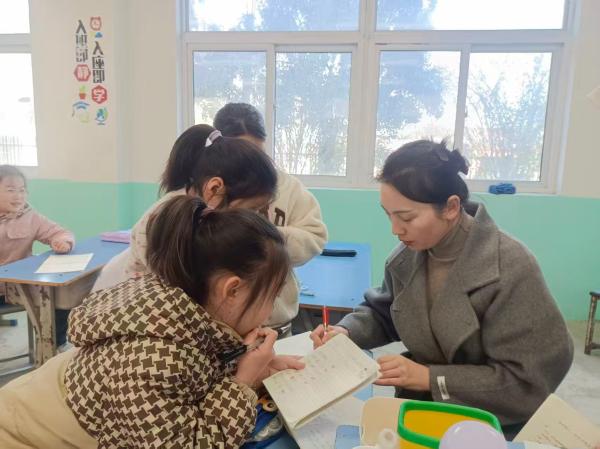 教室里,教师们利用课余时间对学生开展“一对一”课业辅导,讲解解题思路,梳理知识结构。教师和学生们一起翻看绘本、分享成长故事,搭建代际沟通的温暖桥梁,引导学生树立积极向上的心态。