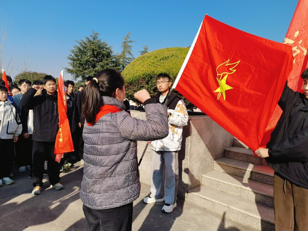 庄严的宣誓环节将活动推向高潮。首先是少先队员代表重温入队誓词,鲜艳的红领巾在胸前飘扬,铿锵的誓言表达了继承革命先辈光荣传统的决心。随后,学校共青团员在团支部书记带领下重温入团誓词,展现了青年学子积极向上的精神风貌。最后,中共党员教师重温入党誓词,铮铮誓言回荡在陵园上空。