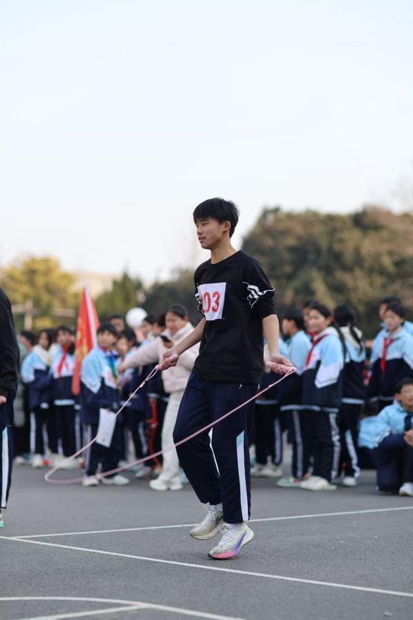 运动会赛程紧凑,内容丰富。上午举行跳绳、仰卧起坐、立定跳远、前抛实心球等项目,注重体能素质与运动技能的全面展示;下午则陆续开展50米跑、八年级及九年级女子800米与男子1000米等田径项目。其间,拔河比赛作为下午的高潮环节之一,吸引了众多师生围观。各班级代表队齐心协力、奋勇拼搏,呐喊声、助威声此起彼伏,将团队精神与集体荣誉感体现得淋漓尽致,也为整个赛场注入了更多激情与活力。