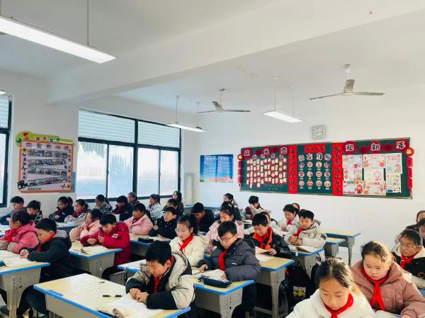 除了黑板报,各班在室内整体布置上也下足了功夫。教室门窗上贴满了学生亲手剪制的窗花和“福”字,一串串自制灯笼与春联交相辉映;图书角换上了“新春特辑”推荐书目,鼓励学生在假期与好书为伴;“班级风采墙”上,一张张照片记录着本学期成长的点点滴滴,旁边配上了同学们对2026年的展望与目标;“心愿树”枝头挂满了五颜六色的卡片,书写着孩子们对新年的美好憧憬。更有班级别出心裁地设置了“民俗文化角”,陈列着与马年相关的民间工艺品、诗词歌赋,让学生在潜移默化中感受传统文化的魅力。