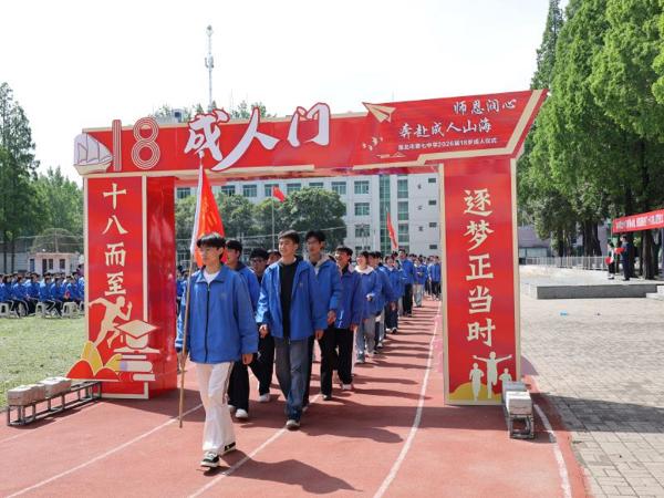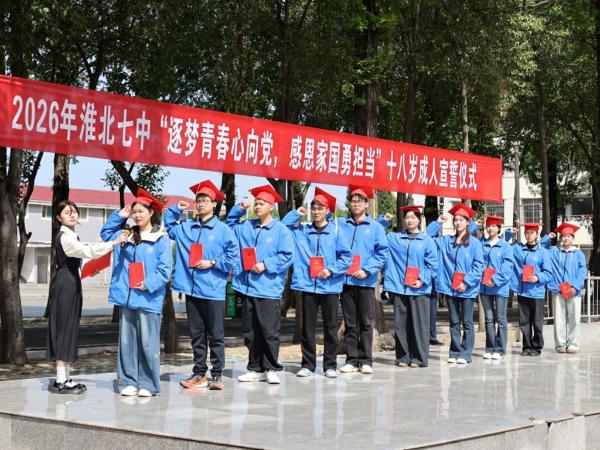 4月23日上午,淮北七中田径场上洋溢着青春的气息,一场以“筑梦青春心向党,感恩家国勇担当”为主题的十八岁成人宣誓仪式在此举行。学校领导、教师代表、家长代表与全体高三学子共同见证了这一重要时刻。