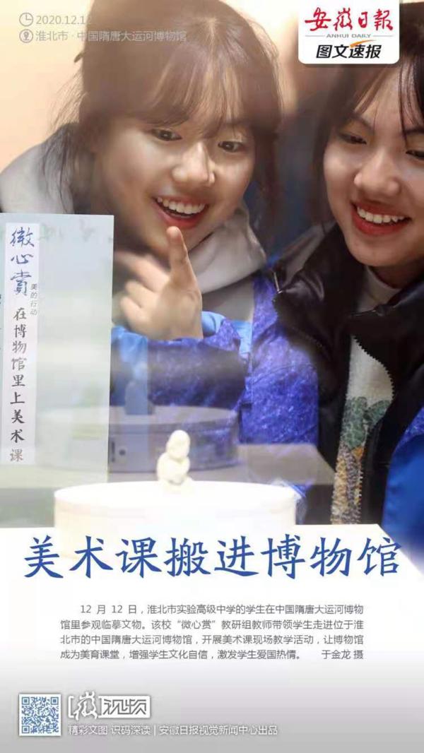 12月12日,淮北市实验高级中学的学生在中国隋唐大运河博物馆参观临摹文物。该校“微心赏”教研组教师带领学生走进中国隋唐大运河博物馆,开展美术课现场教学活动,提升学生美育鉴赏创造能力。 本报通讯员 于金龙 摄
