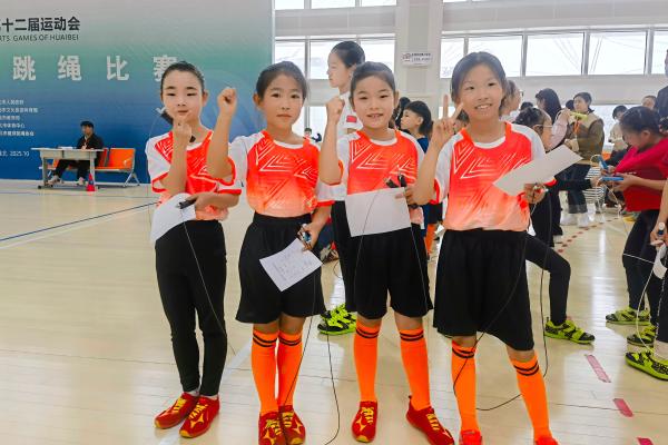 本次比赛由淮北市人民政府主办,是全市规模最大的中小学生跳绳赛事,共吸引19支队伍,200余名“跳绳小达人”同场竞技。比赛按年龄分为甲、乙、丙三个组别,全面考验选手的速度、耐力与团队协作能力。泉山路学校代表队在赛场上展现出卓越的竞技水平:个人速度赛,选手们身轻如燕,灵活跳跃。绳子上下飞舞充分展现出选手们的速度与激情,展现出他们的拼搏与力量,多名选手闯入各组别前八;集体项目中,团队配合默契,摇绳与跳跃节奏精准合一,最终以总分领先锁定胜局。