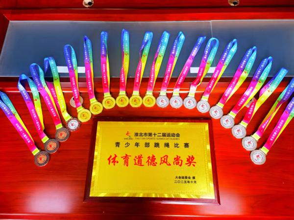 10月25日,淮北市第十二届运动会青少年跳绳比赛在淮北市体育中心全民健身馆圆满落下帷幕。市泉山路学校跳绳队闪耀赛场,以绝对优势勇夺团体总分第一名,在个人速度赛与集体速度赛两大项目中均表现优异,勇摘6金9银4铜奖牌。