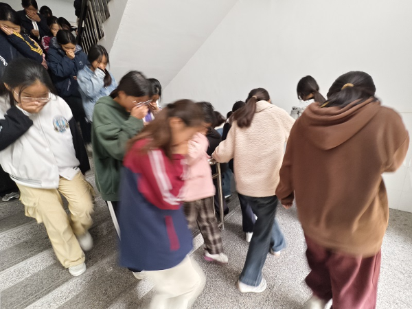 当晚6时许,参与演练的全体住宿生已回到各自宿舍,等待演练指令。晚上6点30分,伴随着一阵急促的警报声,演练正式拉开帷幕。各楼层负责教师迅速就位,按照预定方案组织学生疏散。学生们在老师的指引下,用双手捂住口鼻,弯腰低姿,按照宿舍楼内疏散指示标识指明的方向,快速而有序地向安全区域撤离。各楼层安排的管理老师不断提醒学生注意安全,防止拥挤和踩踏事故的发生。整个疏散过程紧张有序,用时不到3分钟,1000余名住宿生便安全撤离至指定的操场集合点。各班辅导员迅速清点人数,检查是否有学生滞留,并向现场总指挥汇报。