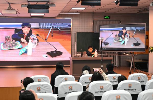 在教学研讨活动中,聚焦“聚焦科学课堂,共研育人实效”主题,丰富多彩。濉溪县城关中心学校第一小学西校区的张慧老师、淮北市人民路学校的李丹老师分别带来《各种各样的运动》《我们的地球模型》优质课例展示,展现了以学生为主体的趣味化、实践化科学教学模式。淮北市首府实验小学的任慧珍老师围绕《神奇的小电动机》进行说课分享,清晰的设计思路获得在场同仁好评。学生实验展示环节中,《紫甘蓝酸碱性》《火山爆发》趣味实验,充分彰显了首小学子的创新思维与实践能力。