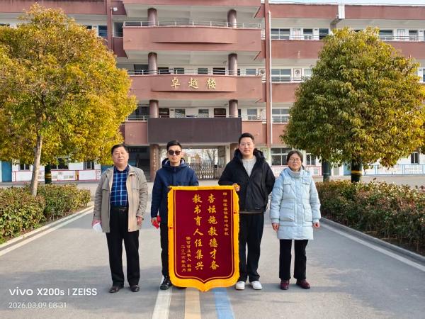 3月9日,濉溪县任集中心学校收到一面写有“杏坛施教德才备 教书育人任集兴”的锦旗,这面锦旗由被救老人家属专程送来,以此感谢该校七(10)班周梓皓、八(2)班周新昊、九(3)班周子成、九(4)班周新乐、九(8)班周子恒五名同学在寒假期间挺身而出、勇救九十二岁落水老人的善行义举。