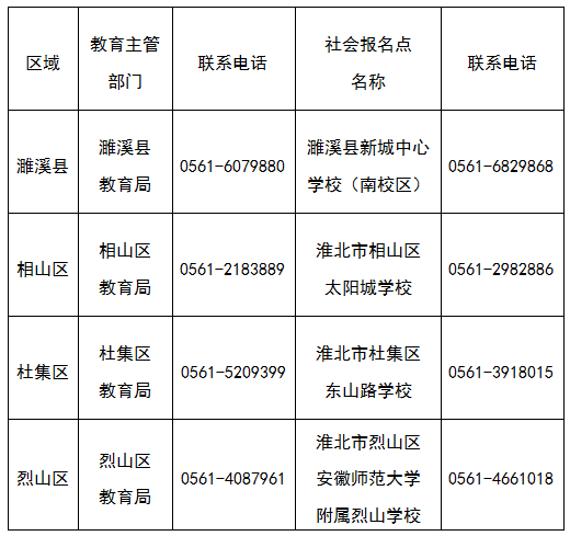 四、淮北市初中学业水平考试社会报名点及联系方式