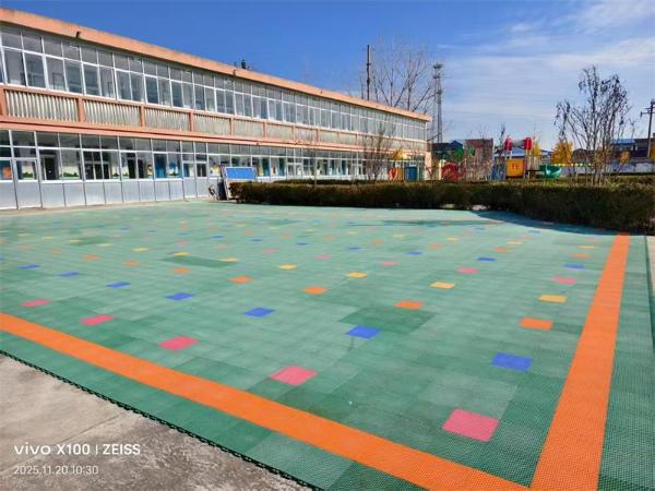 搬运地砖时,年轻教师主动扛起沉重的材料穿梭在运动场;铺设拼接时,大家蹲在地上对齐卡槽,站在上面轻轻踩实。汗水浸湿了衣衫,灰尘沾污了双手,却没人叫苦喊累。有老师膝盖磨得发红,就垫上护膝继续工作;有老师手指被划伤,简单包扎后又投入战斗。“看着地砖一块块铺好,想到孩子们能在安全美观的场地上活动,再累也值得。”学校负责人的话道出了大家的心声。