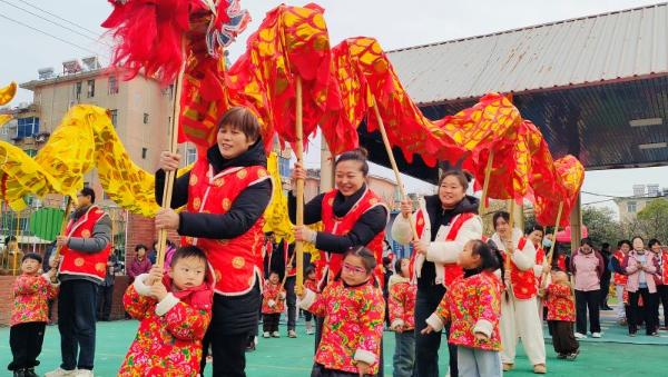 活动伊始,家长与小队员们身着特色新年服饰入场,园长上台致辞,向家长与孩子们送上新年祝福。随后的亲子热身操拉开序幕,现场氛围轻松愉悦。民俗竞技环节亮点纷呈,舞龙比赛率先点燃热情,亲子默契执掌龙身,随鼓点灵动穿梭,尽显协作力量。骑毛驴、旱船、抬花轿等经典项目紧随其后,家长和孩子们感受民俗韵味,现场笑声不断。河蚌比赛中,亲子模仿河蚌姿态前行,尽显童真童趣。气模红包雨环节将氛围推向高潮,家长和孩子齐心协力,定格温馨瞬间。