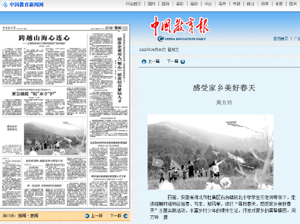日前,安徽省淮北市杜集区石台镇梧北小学学生在老师带领下,走进梧桐村梧桐谷踏春、写生、放风筝,进行“寻找春天,感受家乡美好春天”主题实践活动,丰富乡村少年的课外生活,抒发对家乡的真挚情感。周方玲 摄