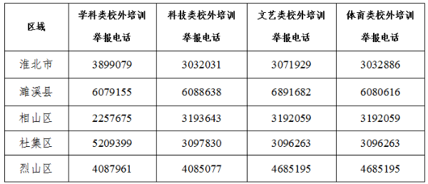 校外培训违规行为投诉举报电话: