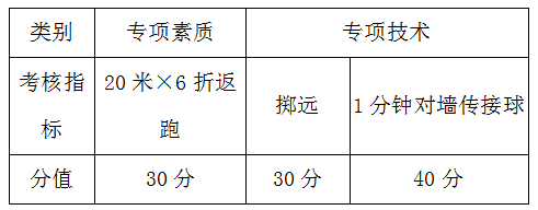 3.专项:100米、800米、急行跳远、原地掷铅球、跳高、立定三级跳远中任选一项(50分)。