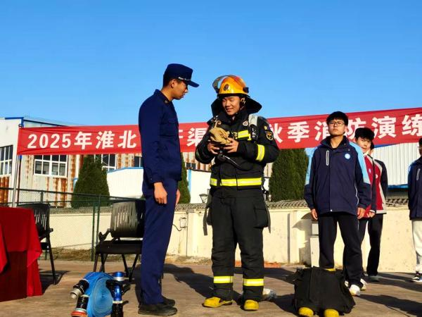 淮北市杜集区消防救援大队南山消防救援站的同志组织现场师生进行疏散演练及灭火器使用培训。通过理论讲解与实操演示,系统普及了灭火器的正确使用方法,火场逃生技巧,初期火灾扑救方法及防烟面具的使用方法。并邀请同学们现场体验。